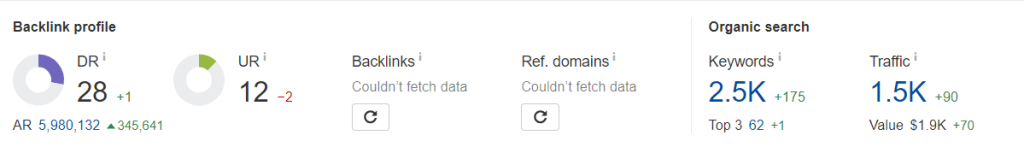 When we started working with Foxy Fillers, their site had a domain rating of 15, which indicates some backlinks and growing authority. Over 11 months of consistent link building, we’ve nearly doubled domain authority to 28.